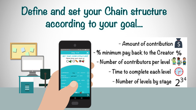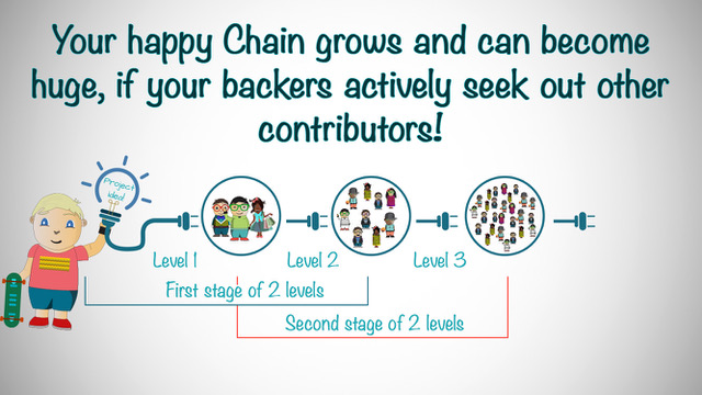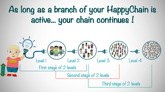 Happy Chain is an application that allows users to share an idea with a community and get contributions in order to develop and launch projects. This is basically a crowdfunding concept working in a multi level system, based on a Chain of contributors. Read more